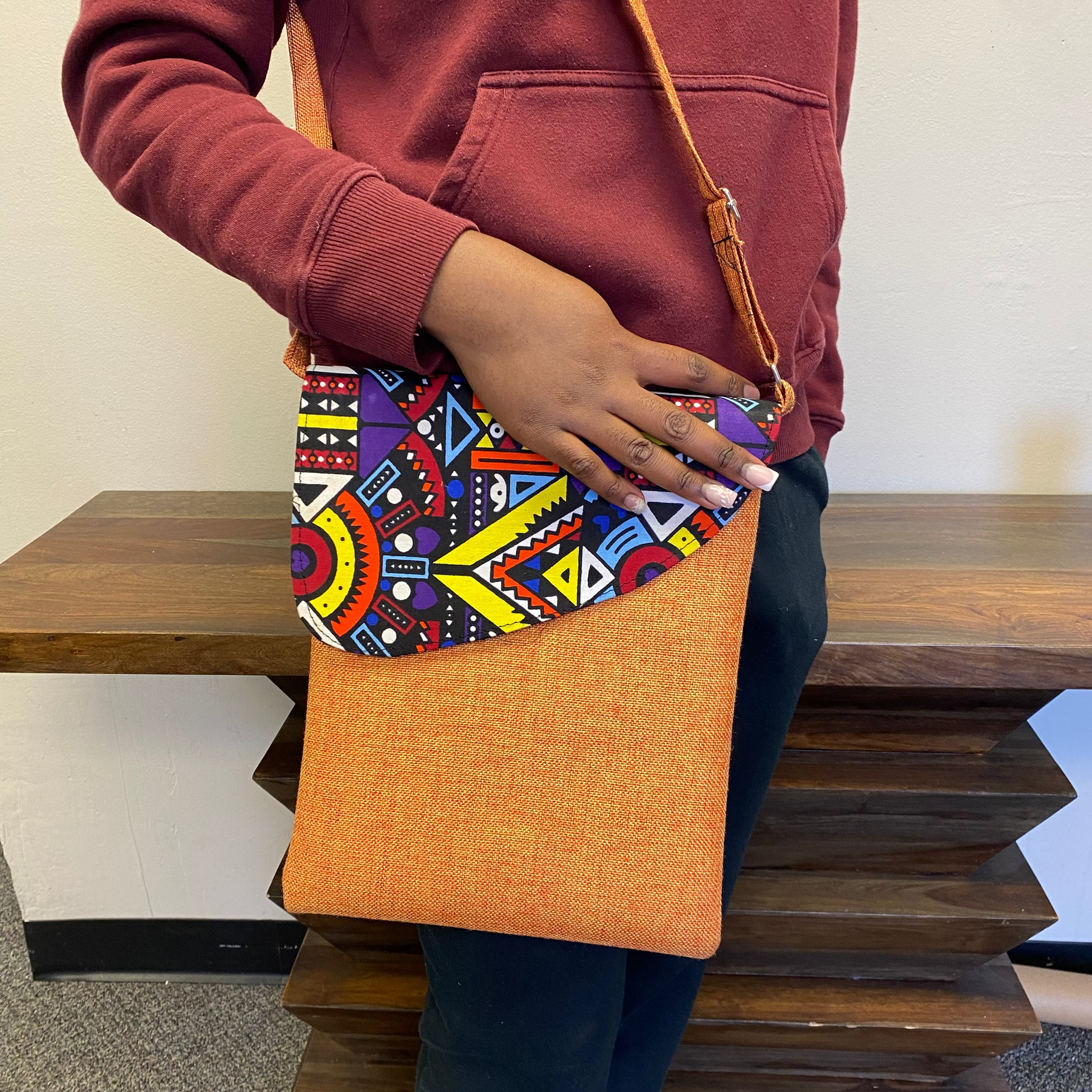🧵 Fair Trade Unisex Crossbody Bag – Handmade from African Cloth & Upholstery Fabric